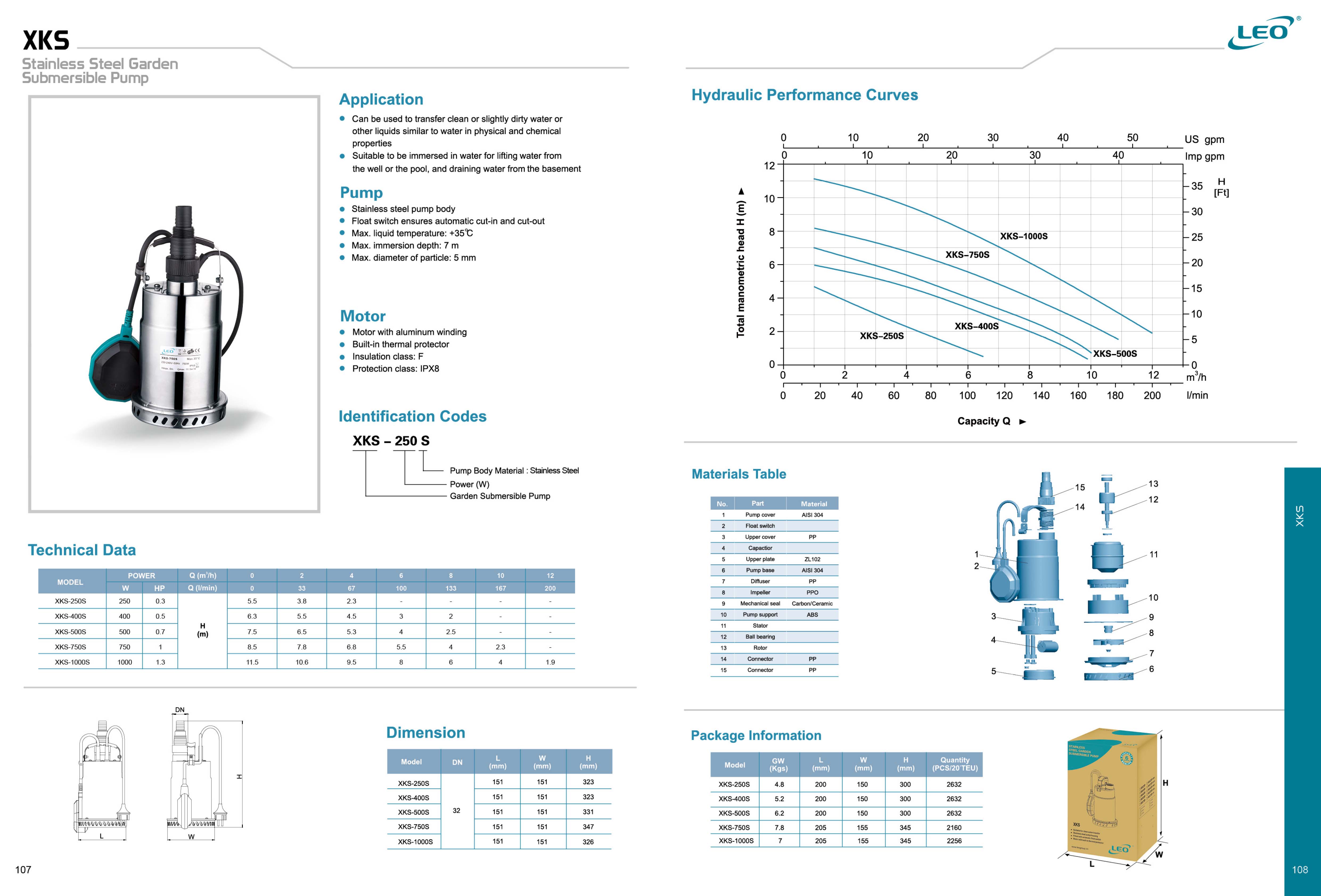 الکترو پمپ های کفکش از نوع پمپ های سانتریفیوژ جهت انتقال سیالات و تخلیه پساب ها هستند که به صورت مستغرق درون سیال قرار می گیرند . سری XKS با پوسته پلیمری و استیل از مقاومت و کارکرد خوبی در مصارف خانگی و باغبانی کوچک جهت بر طرف کردن نیازهای روزانه کم برخوردار است .