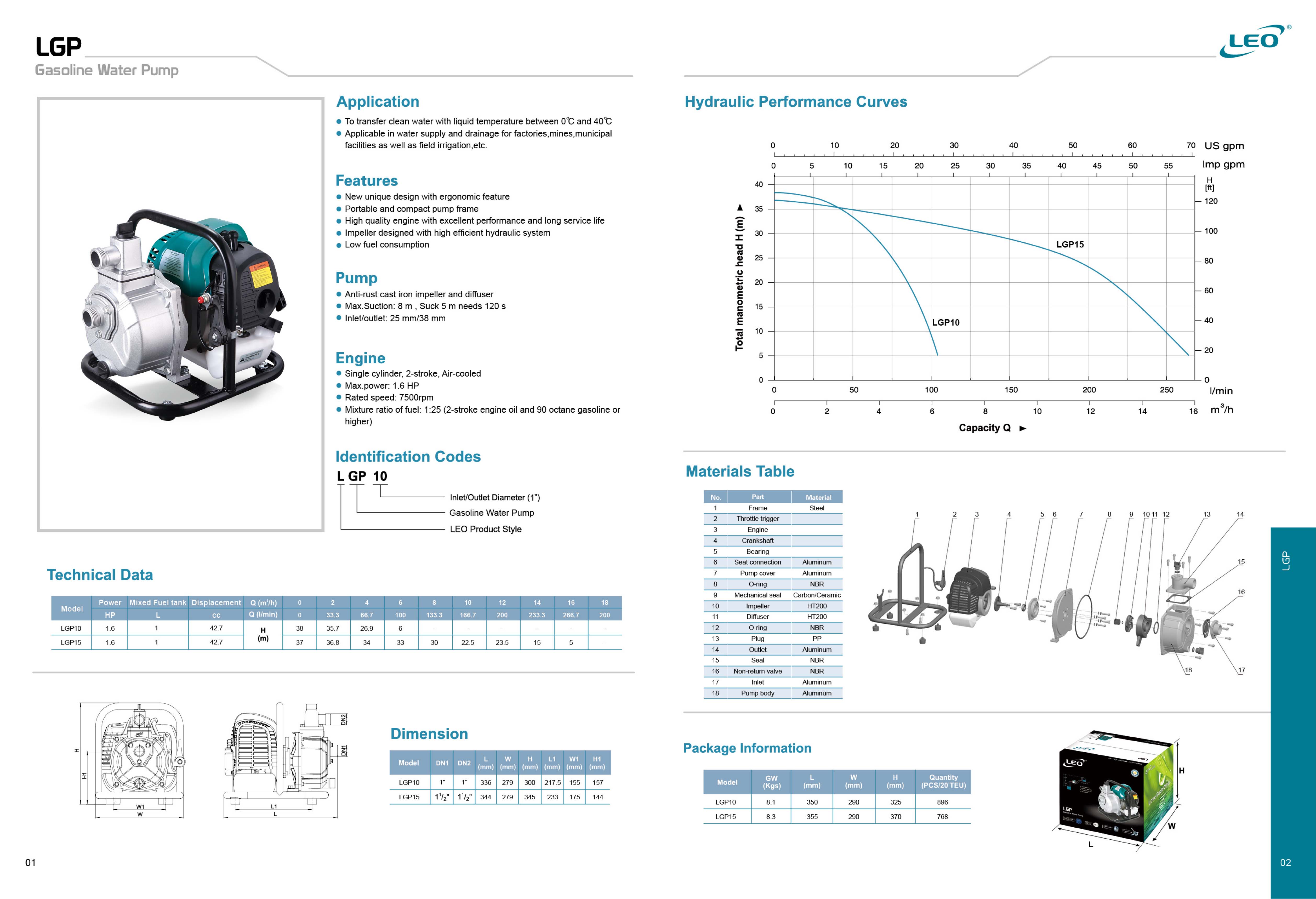 موتور پمپ بنزيني LEO دستگاهي است جهت انتقال انواع سیالات که از دو بخش موتور و پمپ تشکيل شده و اين دو بخش توسط کوپلينگ و شاسي با يکديگر ارتباط برقرار کرده و تشکيل يک دستگاه واحد را داده اند.موتور پمپ هاي ليو به دو دسته بنزيني و گازوئيل تقسيم ميشوند که در مصارف کشاورزي کاربرد دارند . موتور پمپ هاي بنزيني را نيز به دو دسته دو زمانه و چهار زمانه تقسيم مي کنند که در موتور پمپ هاي دو زمانه عمليات احتراق و توليد توان در دو مرحله انفجار و تخليه انجام مي شود