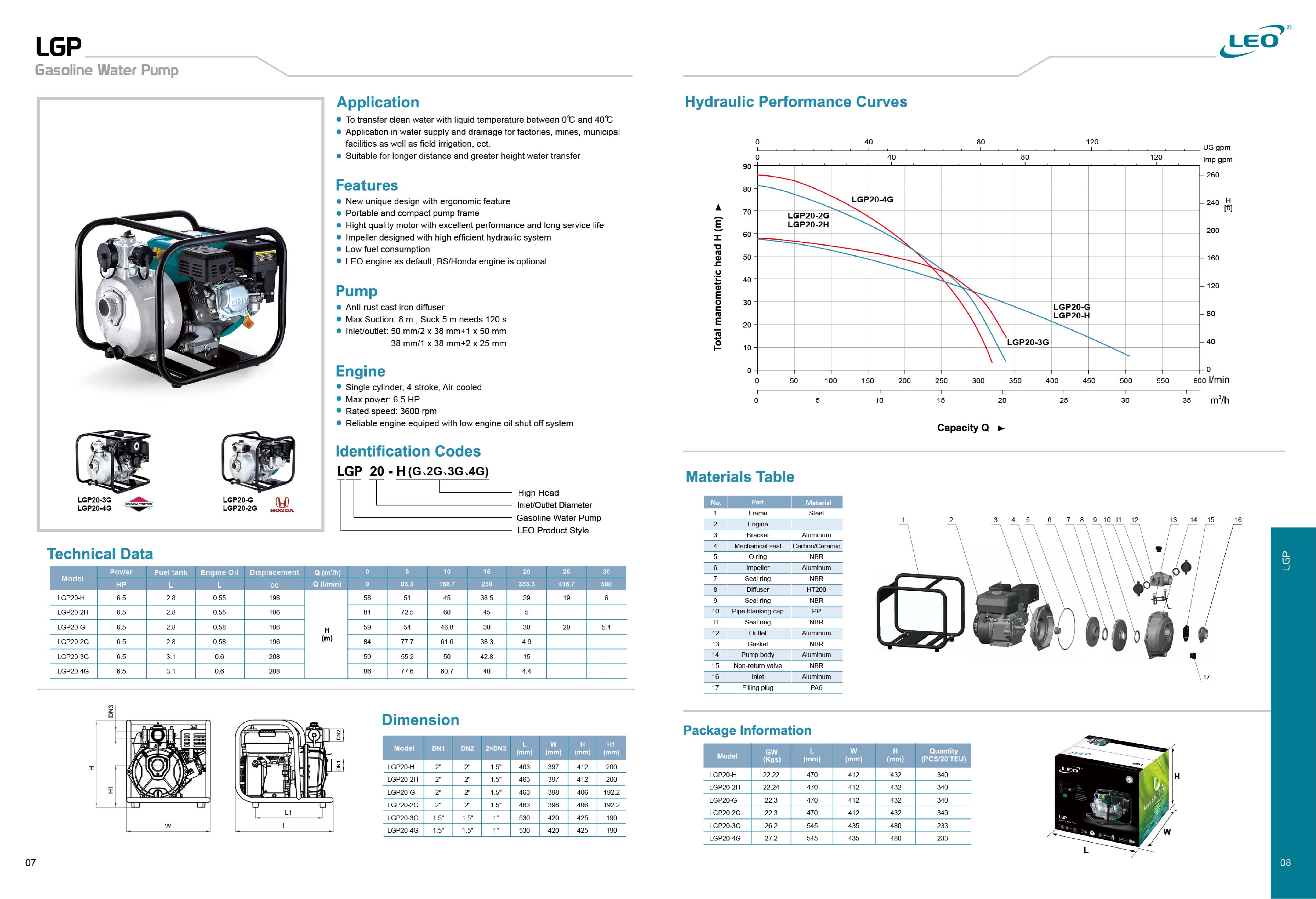 موتور پمپ بنزینی 2 اینچ لیو با مصرف سوخت پایین و عمر طولانی و کیفیت ساخت بالا با بدنه ای از جنس آلومینیوم و حداکثر ارتفاع 81 متر و حداکثر آبدهی 20 متر مکعب در ساعت و حداکثر توان 6.5 اسب بخار در محل هایی که به هر دلیلی برق وجود ندارد با کاربرد انتقال آب در مصارف کشاورزی، خانگی، باغبانی، صنعتی و ساختمانی قابل استفاده می باشد.