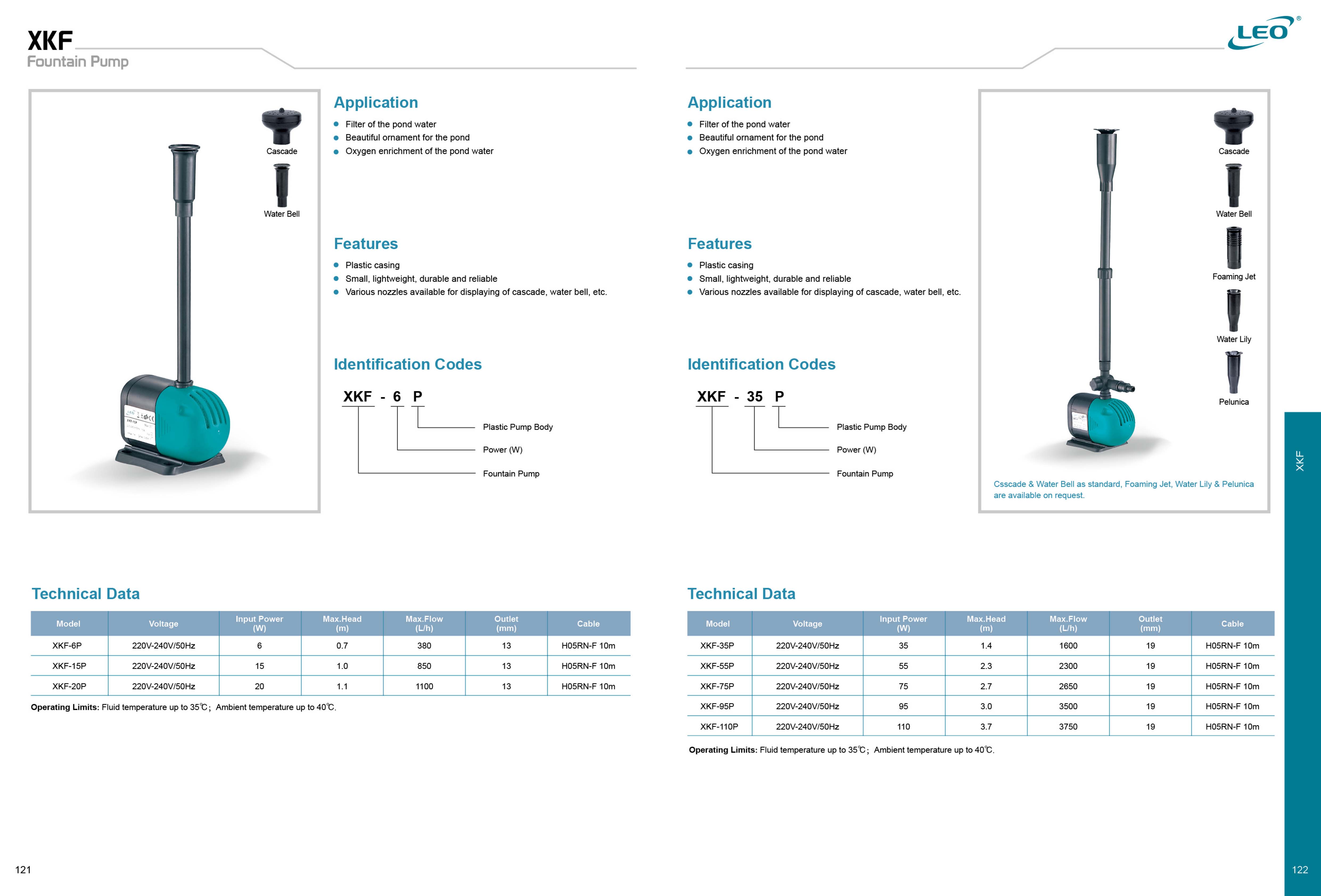 پمپ هاي آبنما سری XKF شامل يک پمپ گريز از مرکز به همراه شفت افقي مي باشند که فشار سيال خروجي آنها به چرخش پروانه ها وابسته است. در سيستم پمپ هاي آبنما از آب بندي مکانيکي استفاده مي شود که مانع نفوذ آب به داخل موتور گردد.اين نوع پمپ ها جهت انتقال سیال تمیز و عاری از مواد جامد و ساینده، غیر چسبناک، غیر کریستالی و از لحاظ شیمیایی خنثی، نزدیک به خواص آب و براي برداشتن آب حوضچه ها به شکل آب نما به کار مي روند. طرز کارکرد پمپ هاي آب نما به اين گونه است که در آب غرق مي گردد و در پايين ترين سطح آب قرارگرفته و آب را به بالا انتقال ميدهد