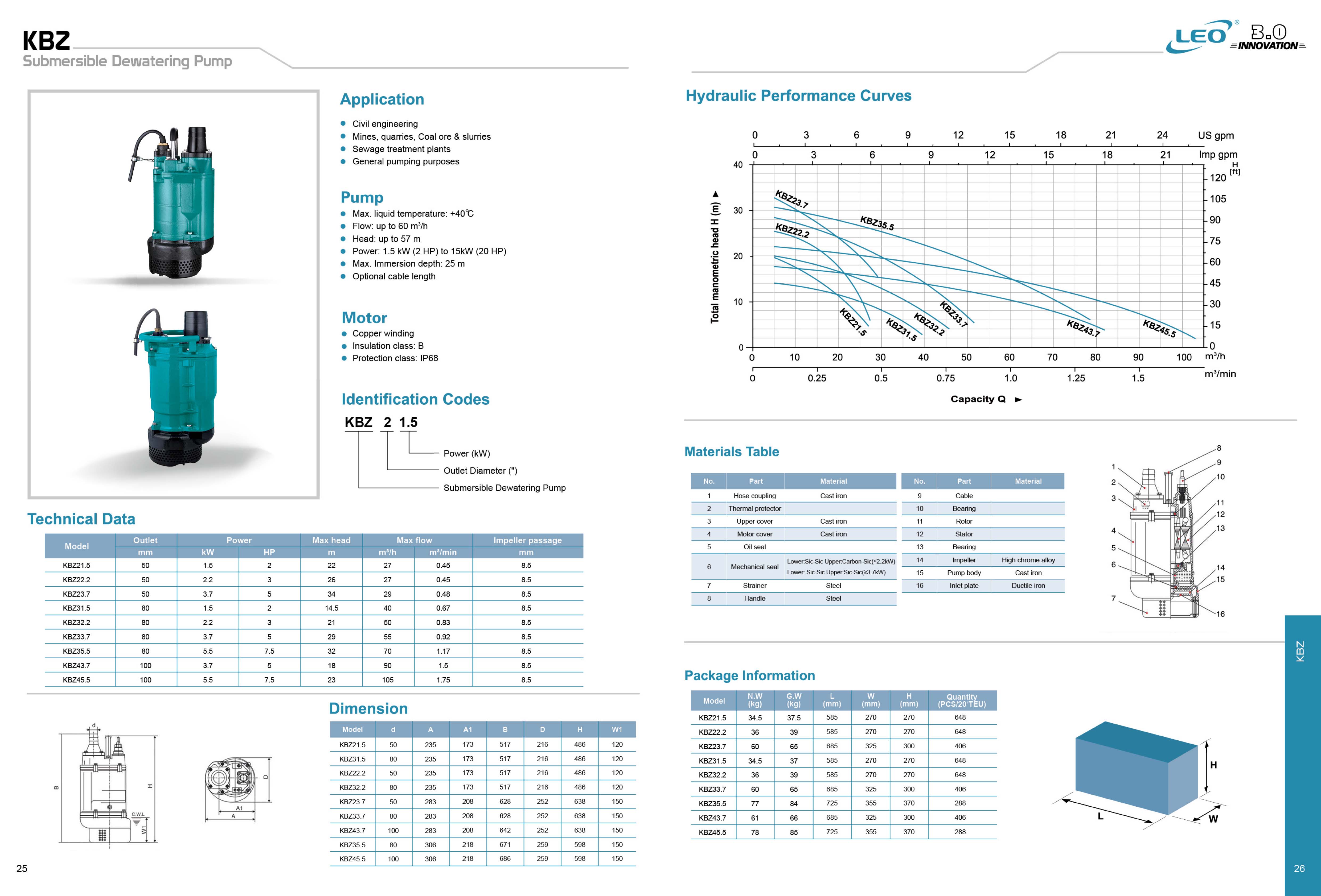 الکترو پمپ های کفکش از نوع ­­­­­­­­­پمپ های سانتریفیوژ جهت انتقال سیالات و تخلیه پساب ها هستند که به صورت مستغرق درون سیال قرار می گیرند . سری KBZ با پوسته چدن ضد زنگ از مقاومت و کارکرد بالایی در پروژه های صنعتی و کارخانجات برخوردار است .